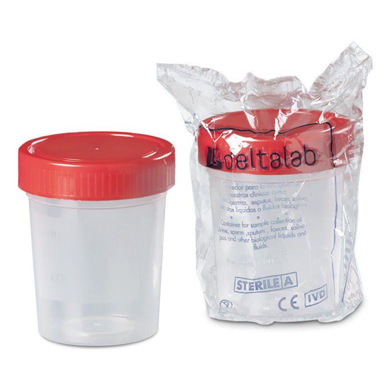 Paquete de 40 unidades de frascos de orina estéril 100ml.
