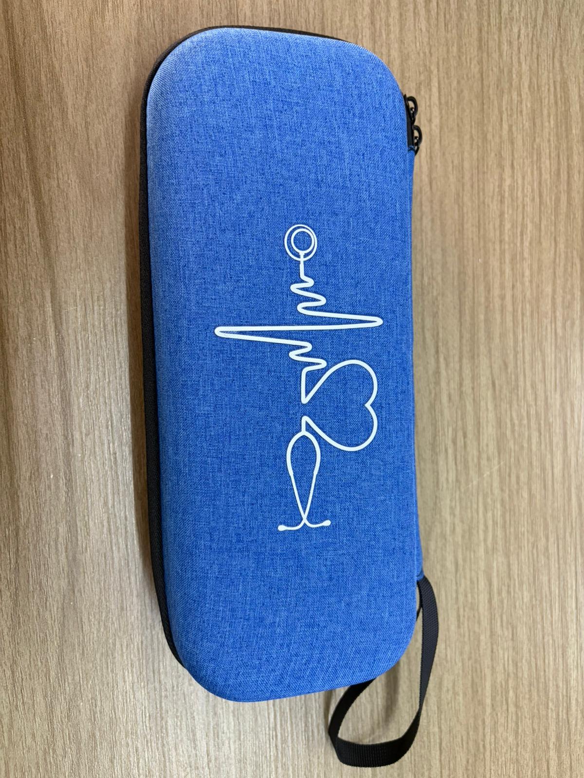 Ideal para Littmann, Magestic, Spirit, etc. 27cm x 11cm x 6cm. Estuche de eva rígido en su exterior y suave en su interior con malla para evtar movimientos indeseados. Incluye una correea para seguridad y facilidad en el traslado.