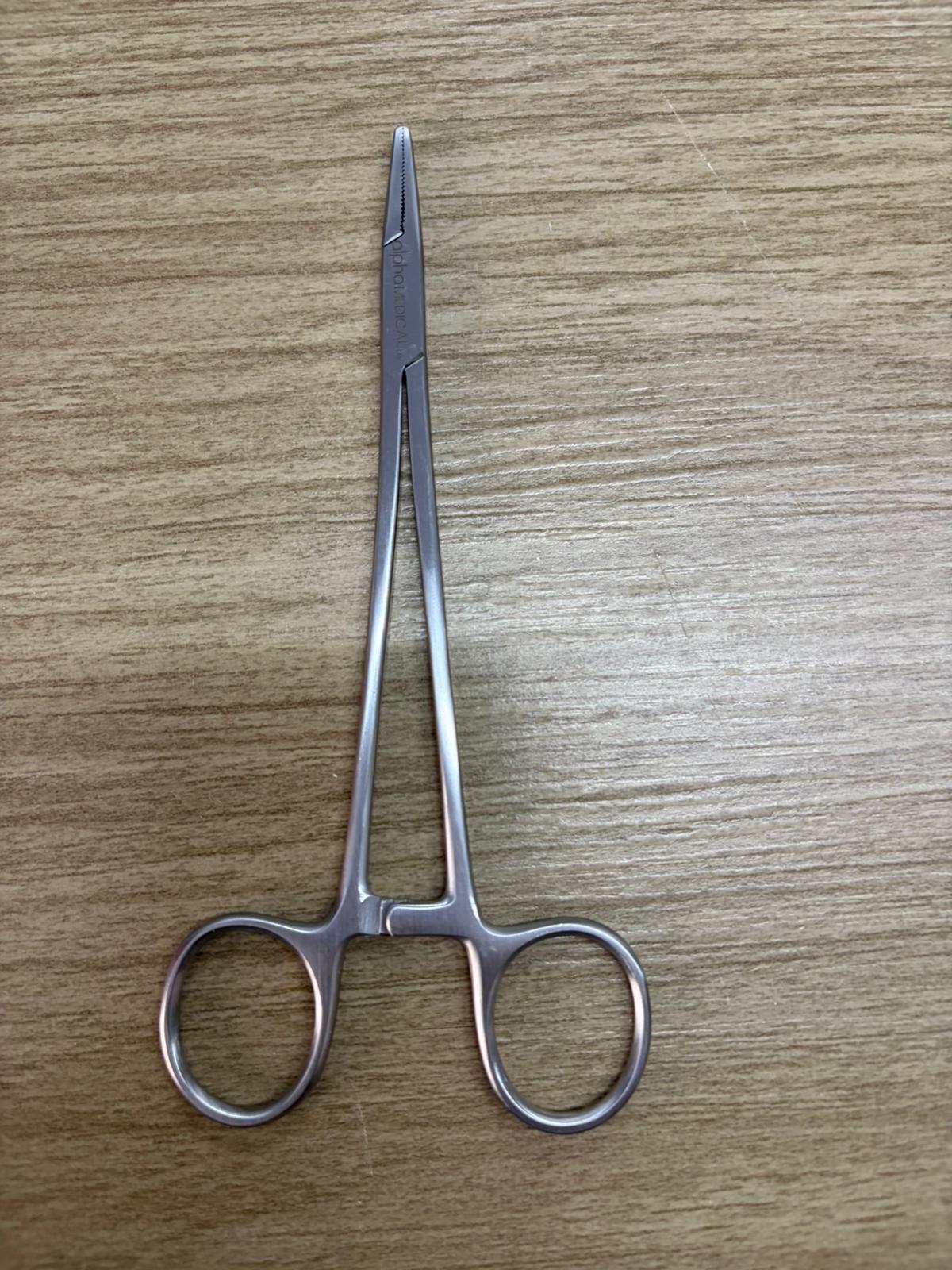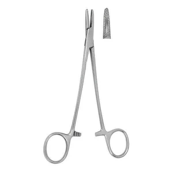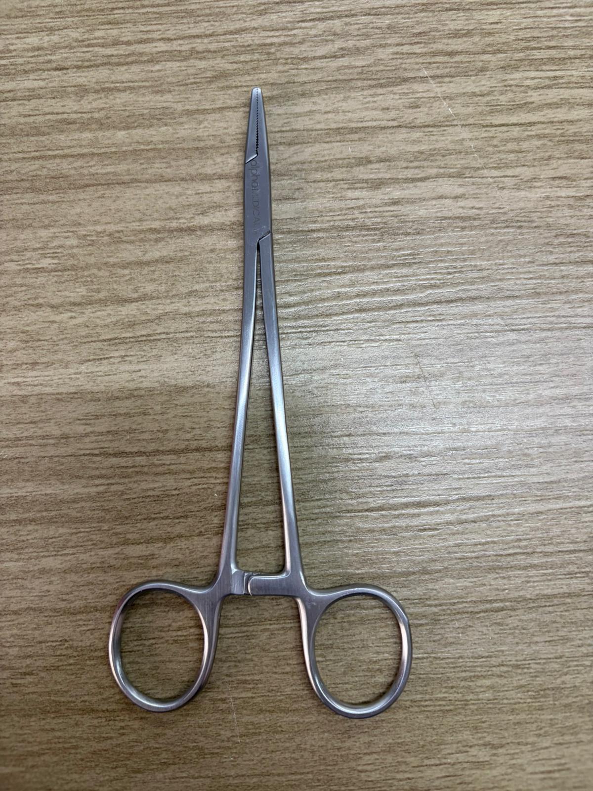 Es un instrumento esencial en el ámbito quirúrgico. Fabricado en acero inoxidable de alta calidad, este porta agujas recto con cierre de tipo cremallera y estrías en la pinza asegura una sujeción firme y precisa de las agujas durante los procedimientos médicos.